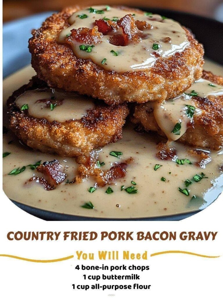 Crispy, golden-brown pork chops smothered in creamy, smoky bacon gravy — the ultimate Southern comfort food! Introduction There’s something truly magical about the combination of crispy fried meat and a …