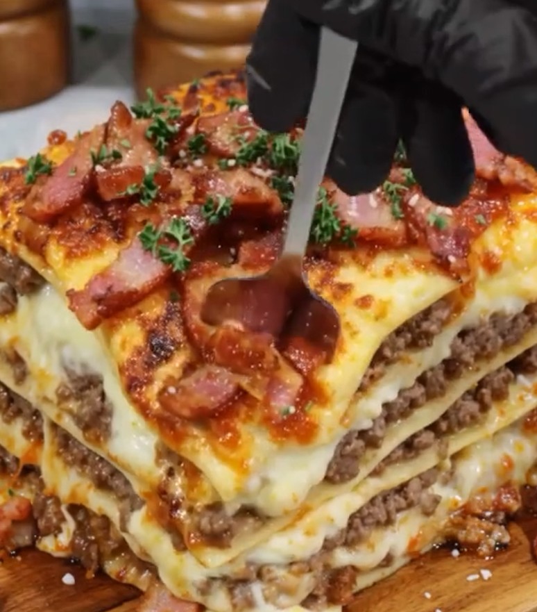 🍝🧄 Parmesan Garlic Bacon Cheeseburger Lasagna A hearty twist on classic lasagna loaded with juicy ground beef, crispy bacon, gooey cheese, and bold garlic flavor. Comfort food at its absolute …