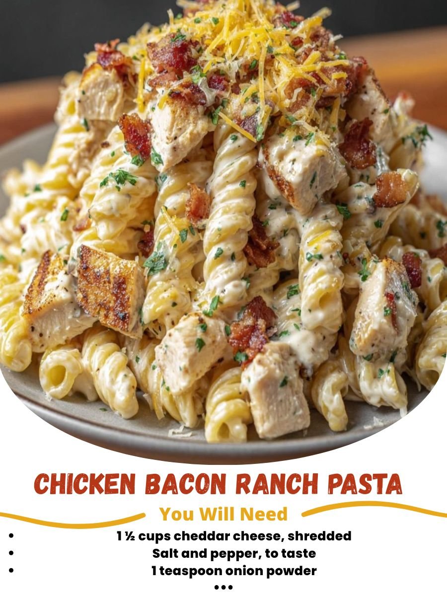 A creamy, cheesy, flavor-packed comfort dish that combines tender chicken, smoky bacon, and the unbeatable trio of ranch seasoning, garlic, and cheddar. This Chicken Bacon Ranch Pasta is the kind of weeknight dinner that disappears fast—rich, hearty, and guaranteed to be a family favorite.