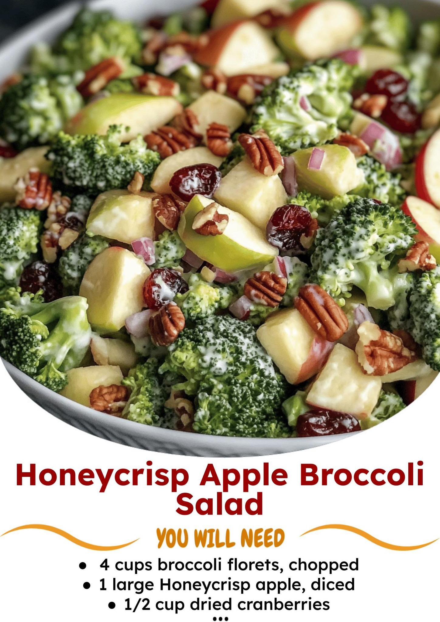 The sweetness of Honeycrisp apples pairs beautifully with tender-crisp broccoli, tart cranberries, crunchy nuts, and that creamy, tangy dressing that ties everything together. Itβs the perfect mix of textures and flavors in every bite β bright, satisfying, and unforgettable.