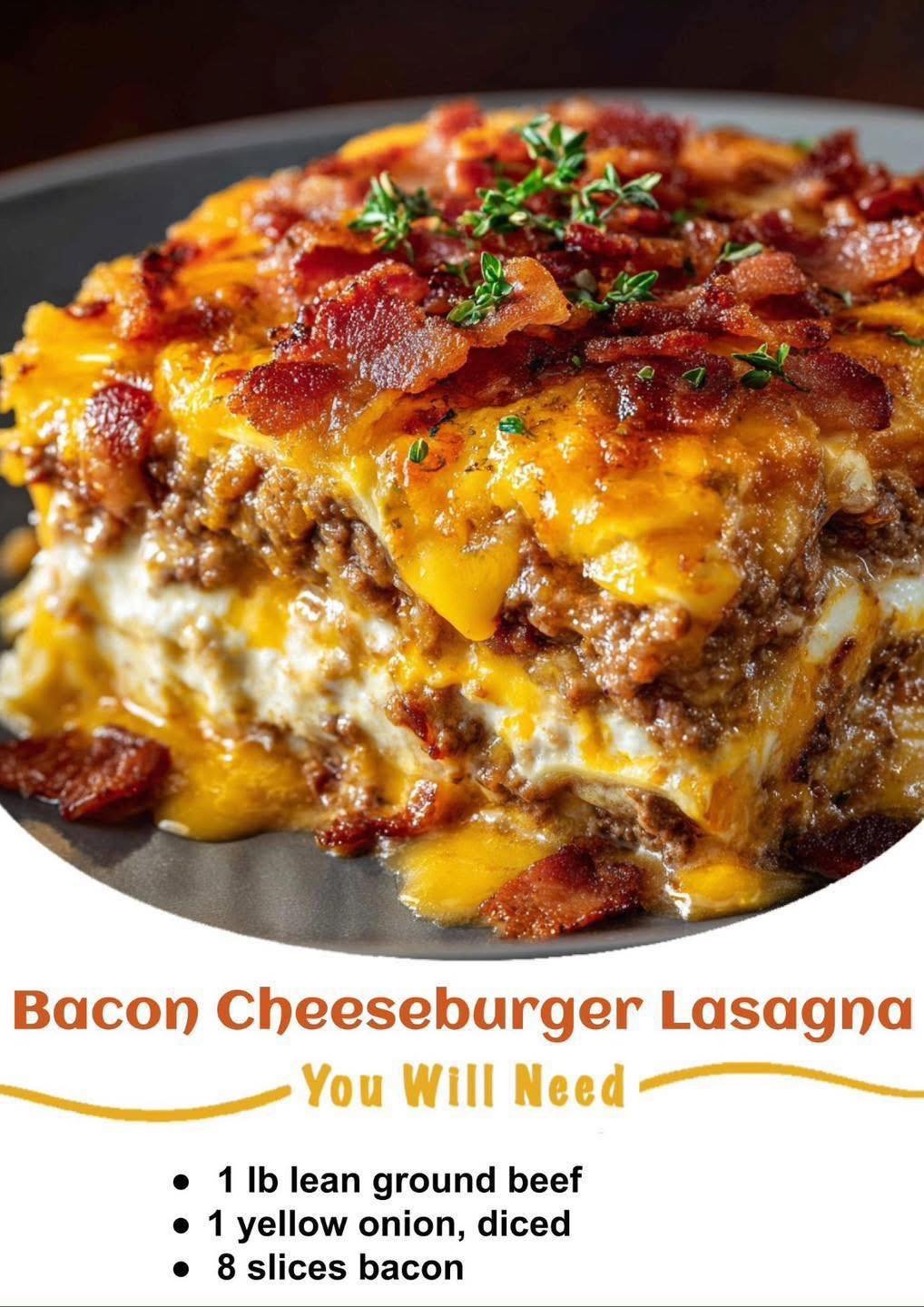 If you love juicy cheeseburgers and comforting lasagna, this mashup is about to become your new family favorite. It’s hearty, cheesy, smoky from the bacon, and packed with savory beef flavor — all baked together into sliceable perfection.