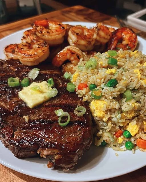 Bold surf-and-turf vibes — the ultimate steakhouse dinner at home! Ingredients : 1 ribeye or sirloin steak (juicy butter steak) 10–12 large shrimp, peeled and deveined (garlic seared shrimp) 2 …