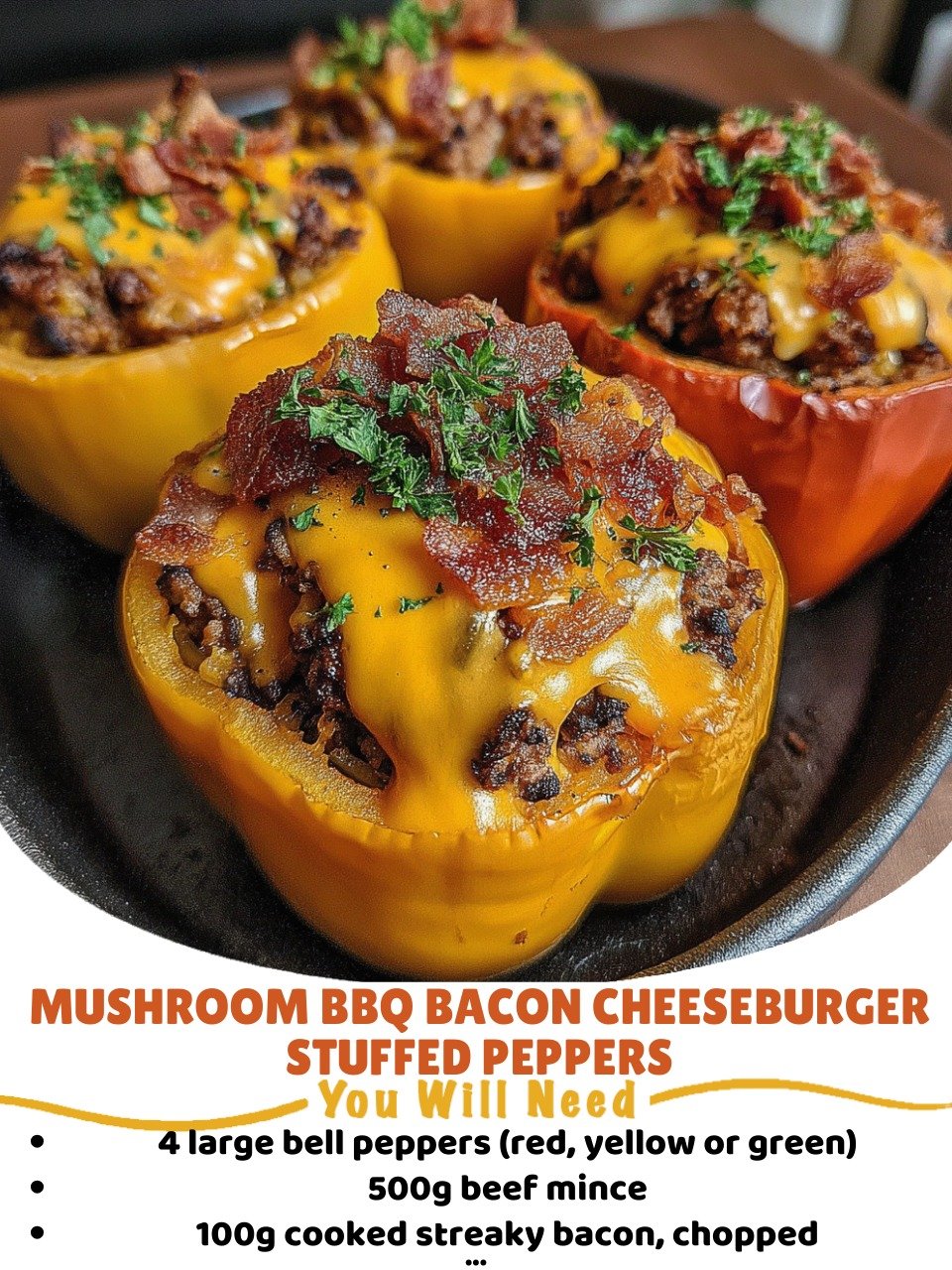 🍔🌶️ Mushroom BBQ Bacon Cheeseburger Stuffed Peppers Juicy, cheesy, smoky-sweet stuffed peppers that taste just like a fully loaded cheeseburger If you love cheeseburgers but want something a little different …