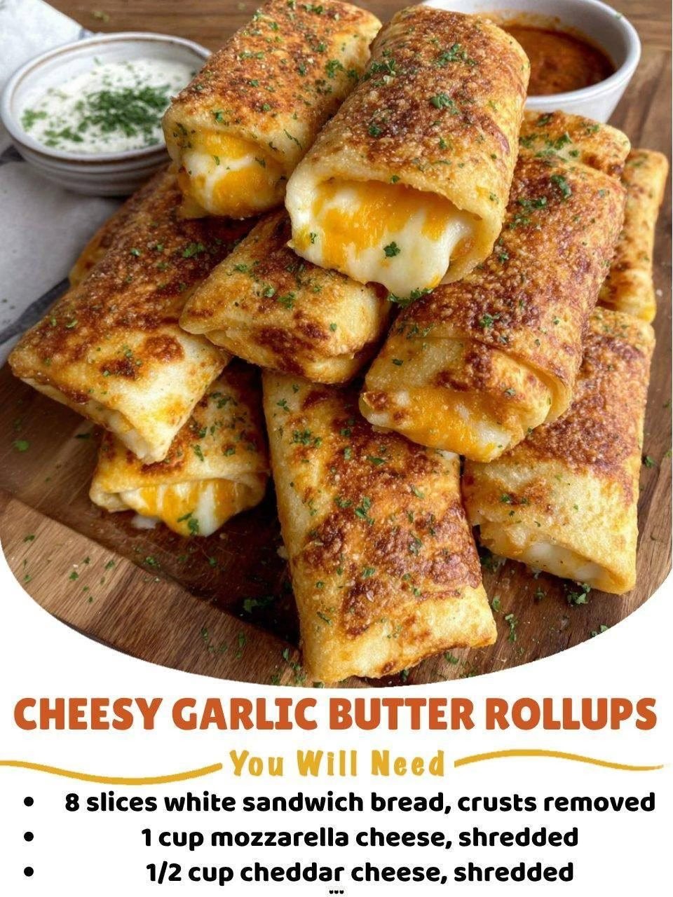 🧄🧀 Cheesy Garlic Butter Rollups 🥖✨ Crispy golden bites stuffed with melty cheese and soaked in buttery garlic goodness! If you’re looking for a quick and irresistible appetizer, these Cheesy …
