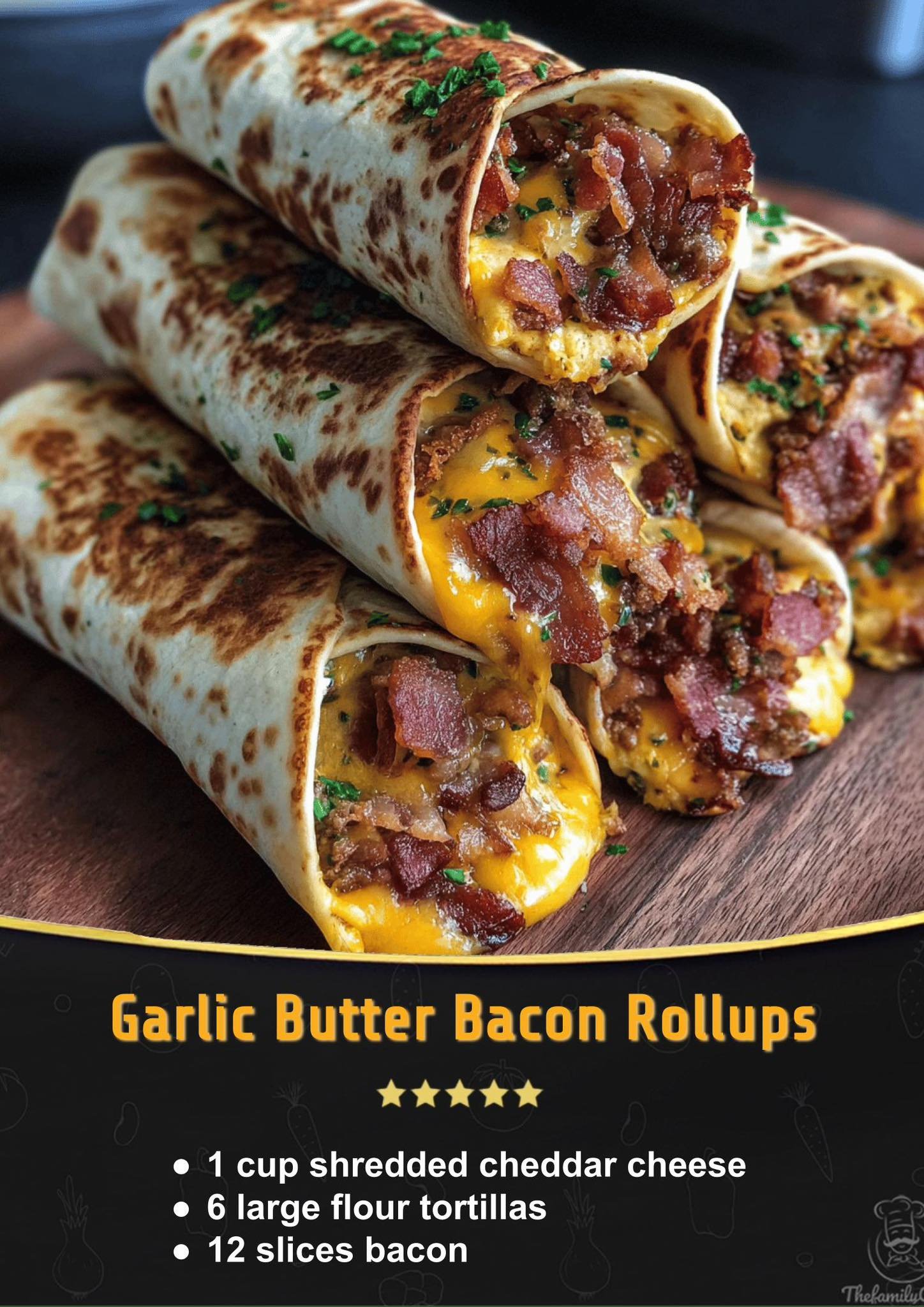 🧄🥓 Garlic Butter Bacon Rollups 🧀✨ These Garlic Butter Bacon Rollups are crispy, cheesy, and packed with bacon and garlicky flavor. Perfect as an appetizer, snack, or even a quick …
