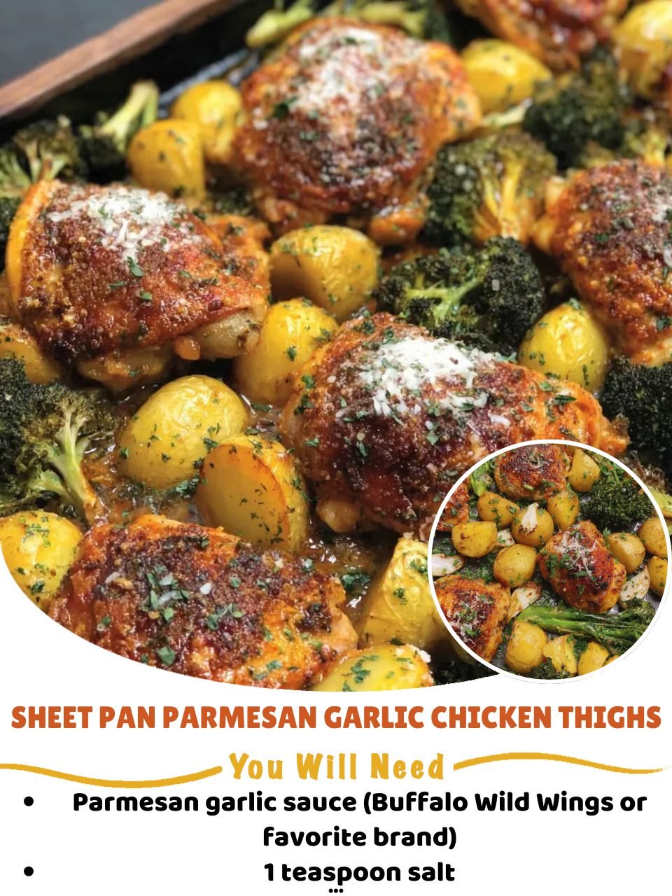 🍗🧄 Sheet Pan Parmesan Garlic Chicken Thighs 🧄🍗 Juicy, crispy-edged chicken with roasted veggies — all on one pan Description These Sheet Pan Parmesan Garlic Chicken Thighs are the definition …