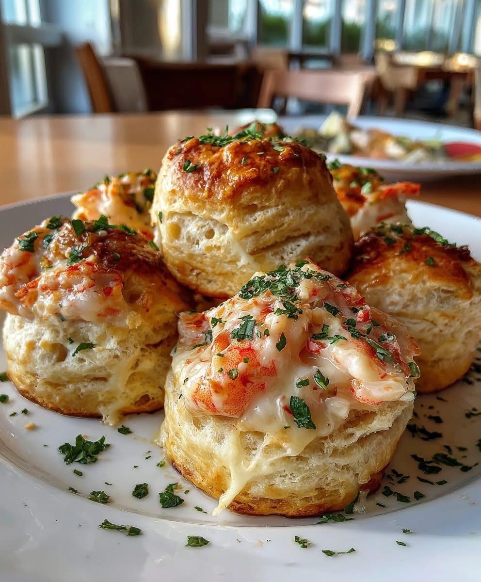 Flaky, buttery biscuits stuffed with creamy lobster filling — the ultimate seafood appetizer or brunch showstopper!