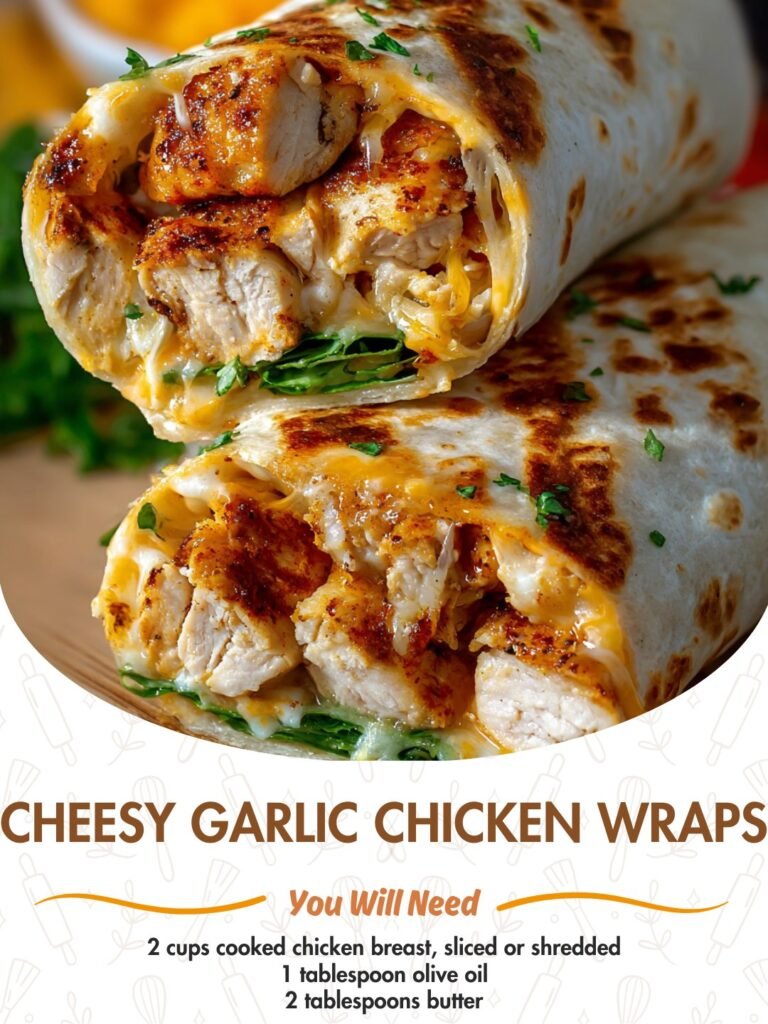 Cheesy Garlic Chicken Wraps 🧄🧀 Creamy, garlicky, and loaded with melty cheese in every bite Description These Cheesy Garlic Chicken Wraps are everything you want in a fast, satisfying meal. …