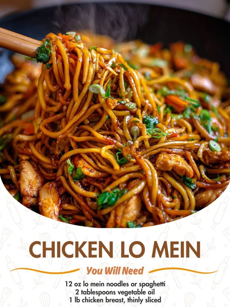 Chicken Lo Mein 🍜🐔 A quick and flavorful noodle favorite made right at home Description This Chicken Lo Mein is everything you love about your favorite takeout—tender chicken, perfectly cooked …