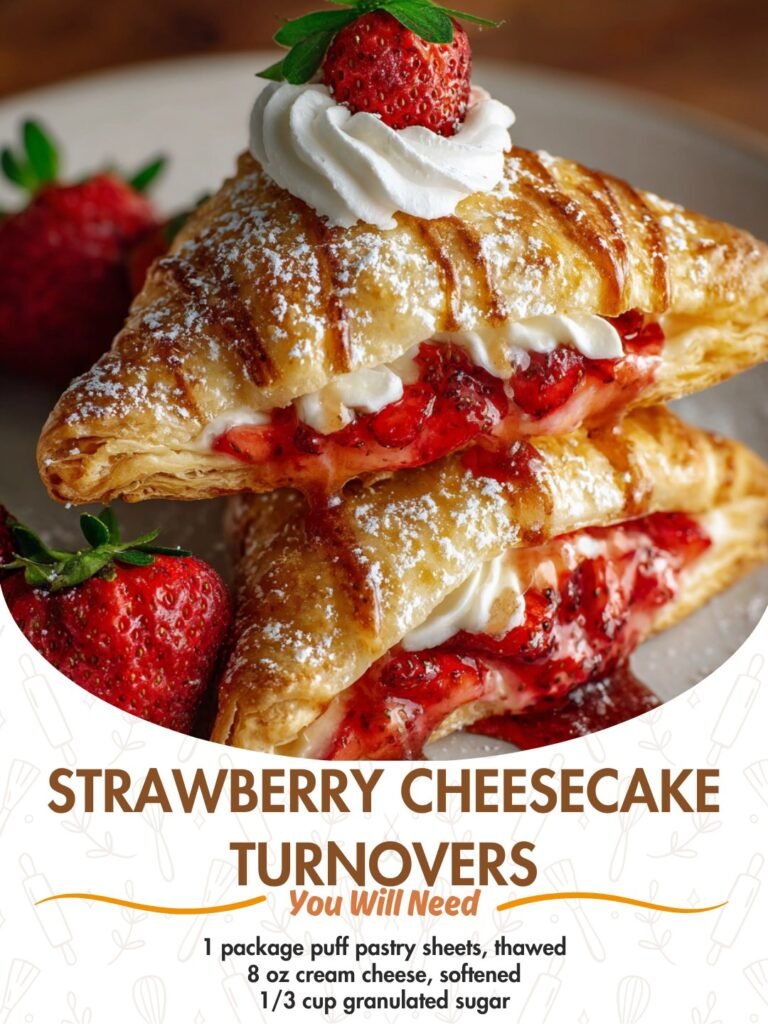 🍓🥐 Strawberry Cheesecake Turnovers Flaky, golden pastry stuffed with creamy cheesecake filling and fresh strawberries—perfect for breakfast, dessert, or a sweet snack! These Strawberry Cheesecake Turnovers are buttery, crispy, and …