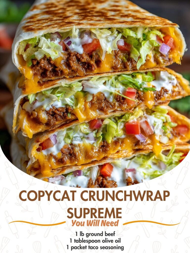 Copycat Crunchwrap Supreme 🌮🔥 All the iconic layers you love—made fresh at home Description If you’re craving fast-food comfort without the drive-thru, this Copycat Crunchwrap Supreme hits the spot. Seasoned …