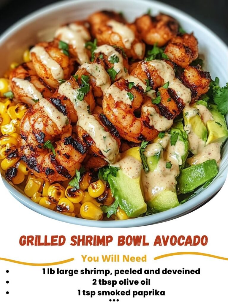 Grilled Shrimp Avocado Bowl 🦐🥑 Smoky shrimp, creamy avocado, and fresh corn salsa with a tangy lime drizzle Description This Grilled Shrimp Avocado Bowl is bright, satisfying, and full of …