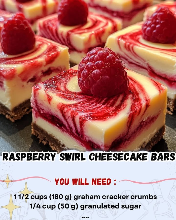 🍓🍰 Raspberry Swirl Cheesecake Bars Rich, creamy cheesecake on a buttery graham cracker crust with a vibrant raspberry swirl—perfect for dessert tables or a sweet treat anytime! These Raspberry Swirl …
