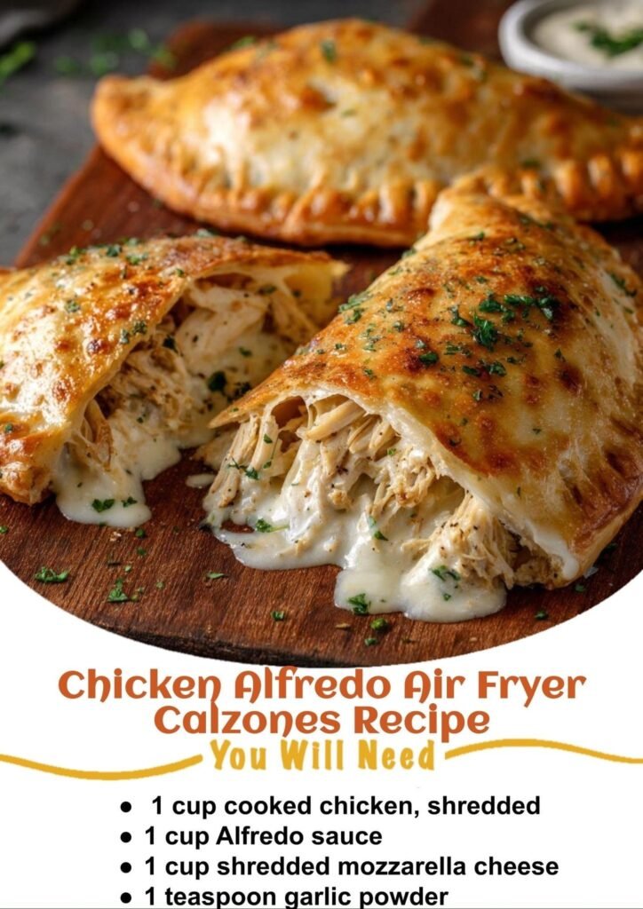 🥟 Chicken Alfredo Air Fryer Calzones Golden, crispy calzones filled with creamy Alfredo chicken and melty mozzarella—made easy in the air fryer! These Chicken Alfredo Calzones are the perfect mash-up …