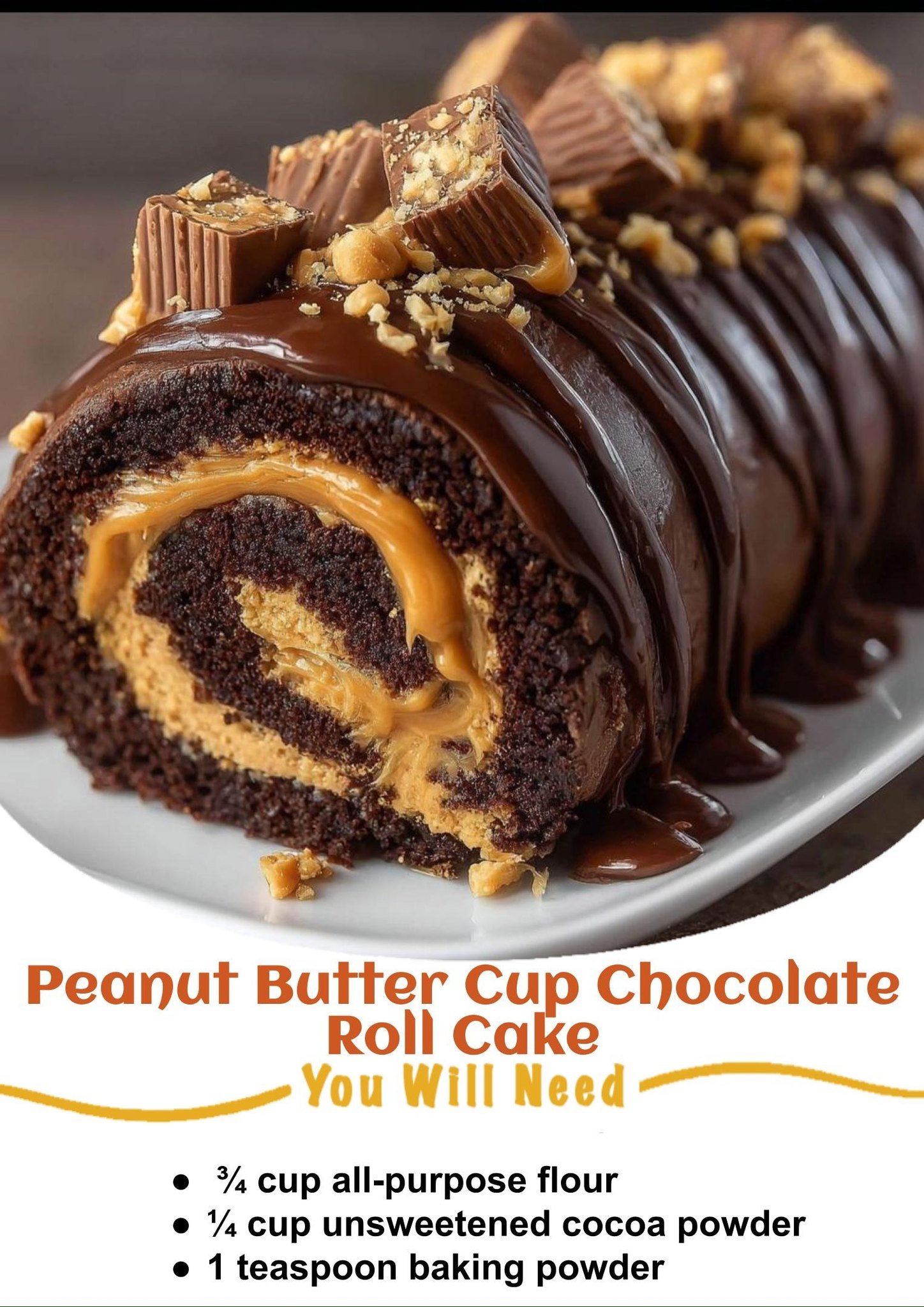 Rich chocolate sponge rolled with creamy peanut butter filling and loaded with peanut butter cups—this dessert is pure showstopper magic.