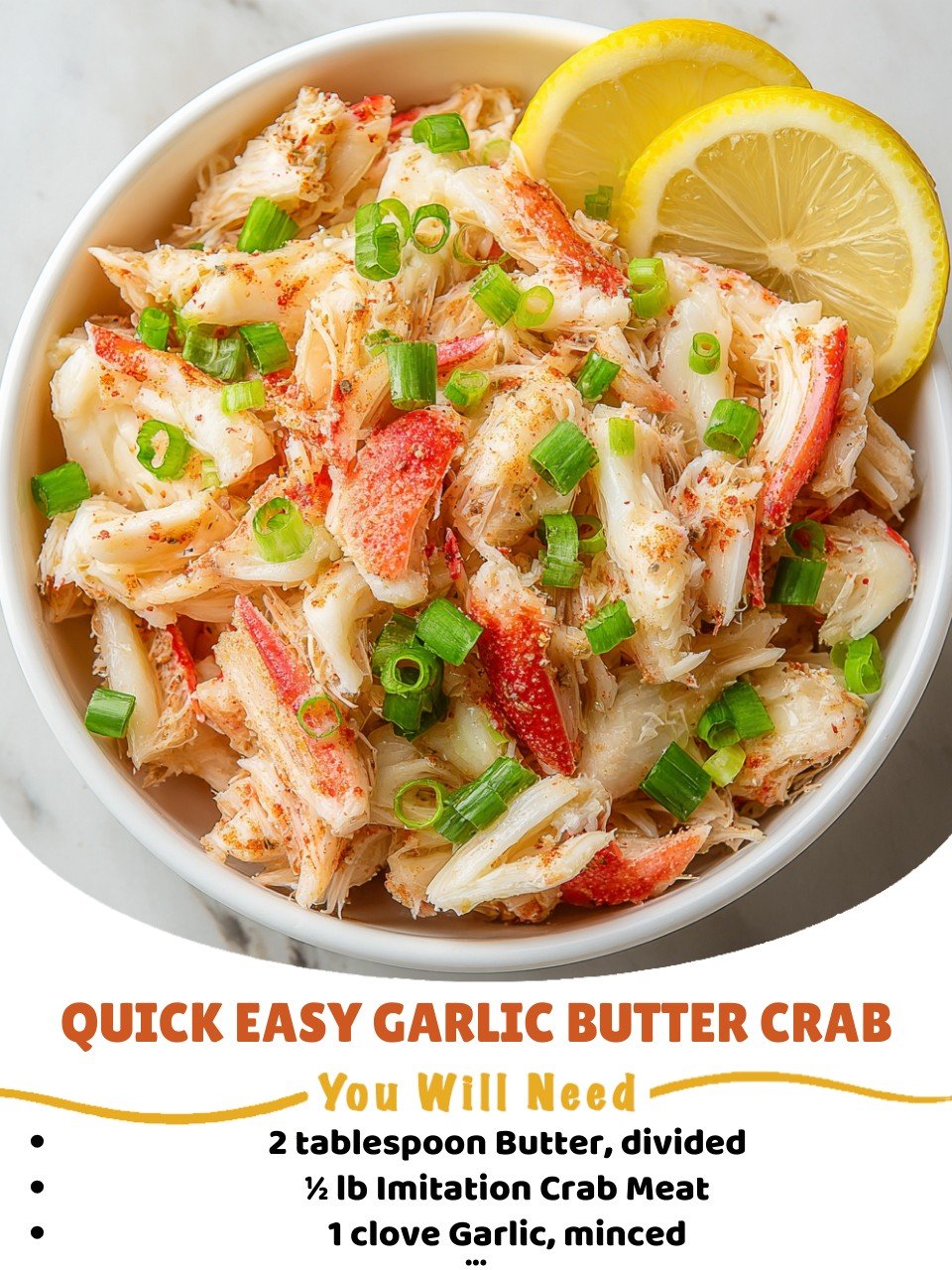 A fast, flavorful, buttery seafood dish made with tender imitation crab, fresh garlic, warm spices, and a splash of lemon. It’s budget-friendly, beginner-friendly, and ready in 10 minutes — making it perfect for quick lunches, appetizers, or a simple weeknight meal. Serve it with rice, pasta, veggies, or crusty bread to soak up all that garlicky butter goodness!