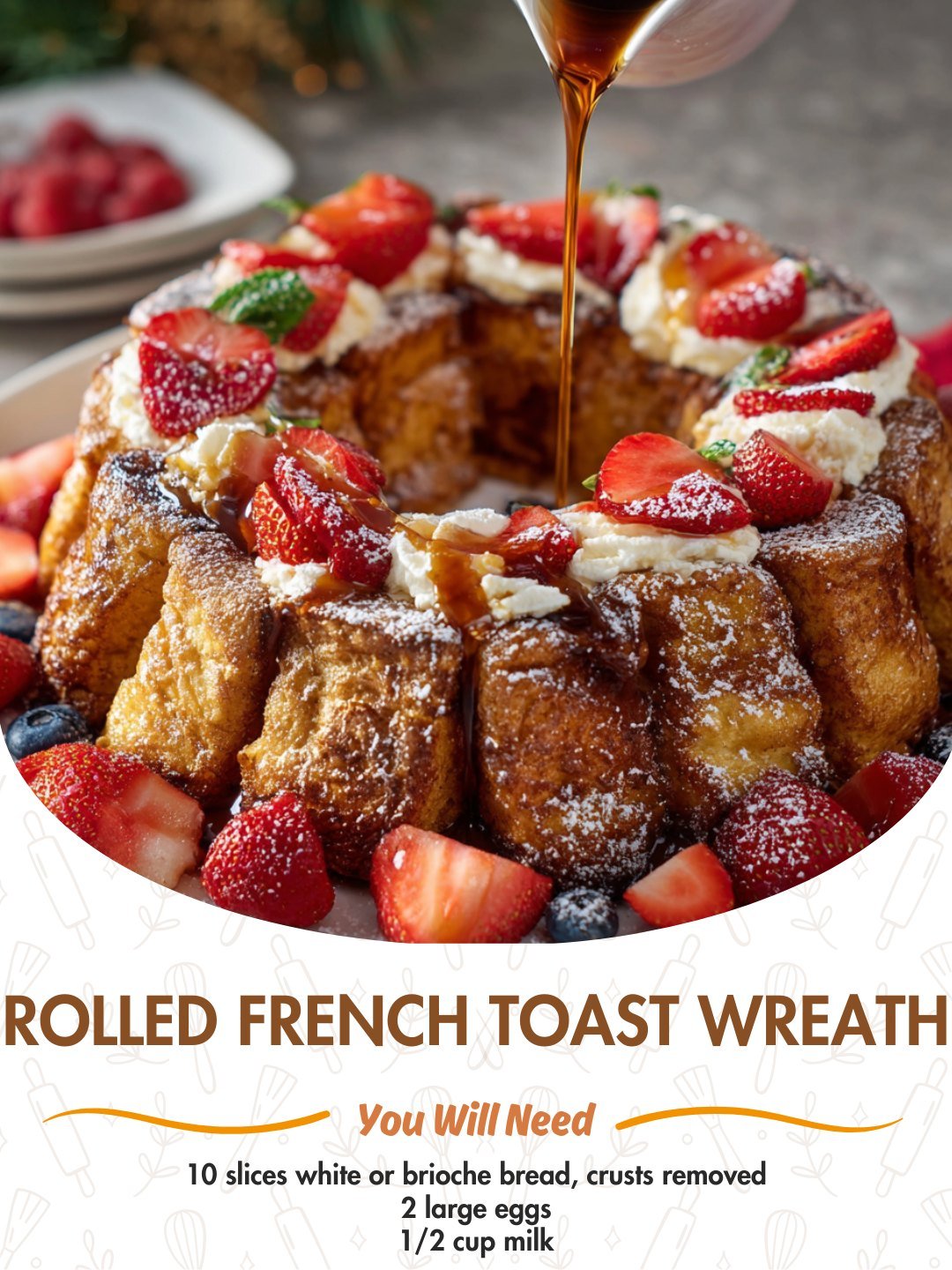 🍞✨ Rolled French Toast Wreath – A Stunning Breakfast Centerpiece! ✨🍓