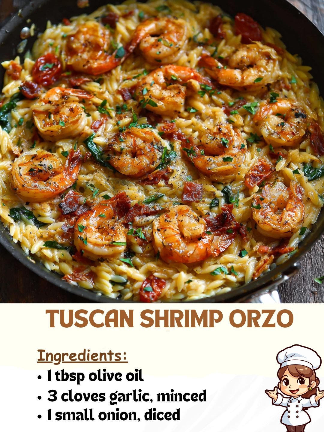 This Tuscan Shrimp Orzo is a quick yet luxurious meal that combines tender shrimp, tender orzo pasta, and a creamy, garlicky, sun-drenched sauce with spinach, tomatoes, and Italian herbs. It’s the perfect weeknight dinner that feels elegant but is ready in under 30 minutes.